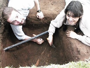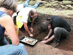 been digging Trench B. All they have found so far is a 6" Victorian (possibly)