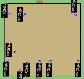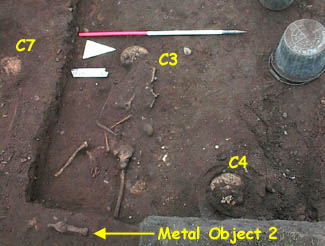 of Trench A. The empty graves of skeletons C5 and C6 are marked. |